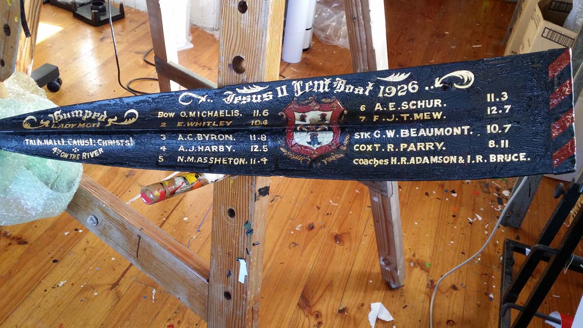 Gold leaf lettering is ideal for honour boards in club rooms as well as on commemorative items such as oars for lifesaving clubs or school groups.